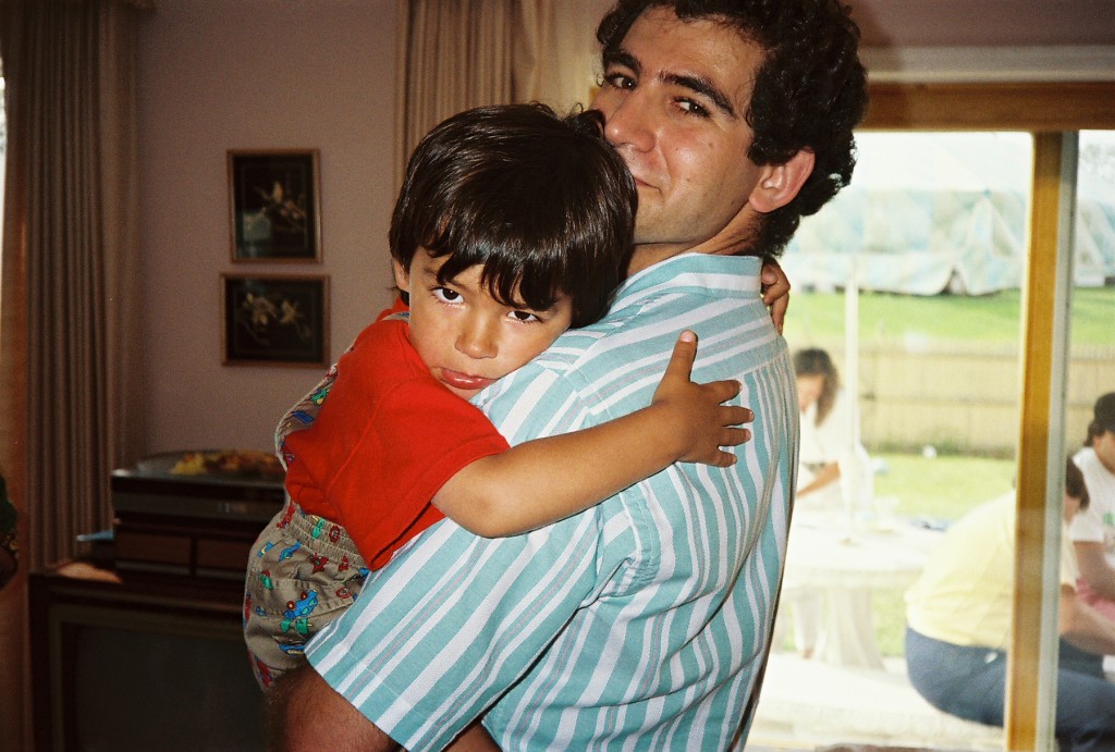 I cling to his shirt
